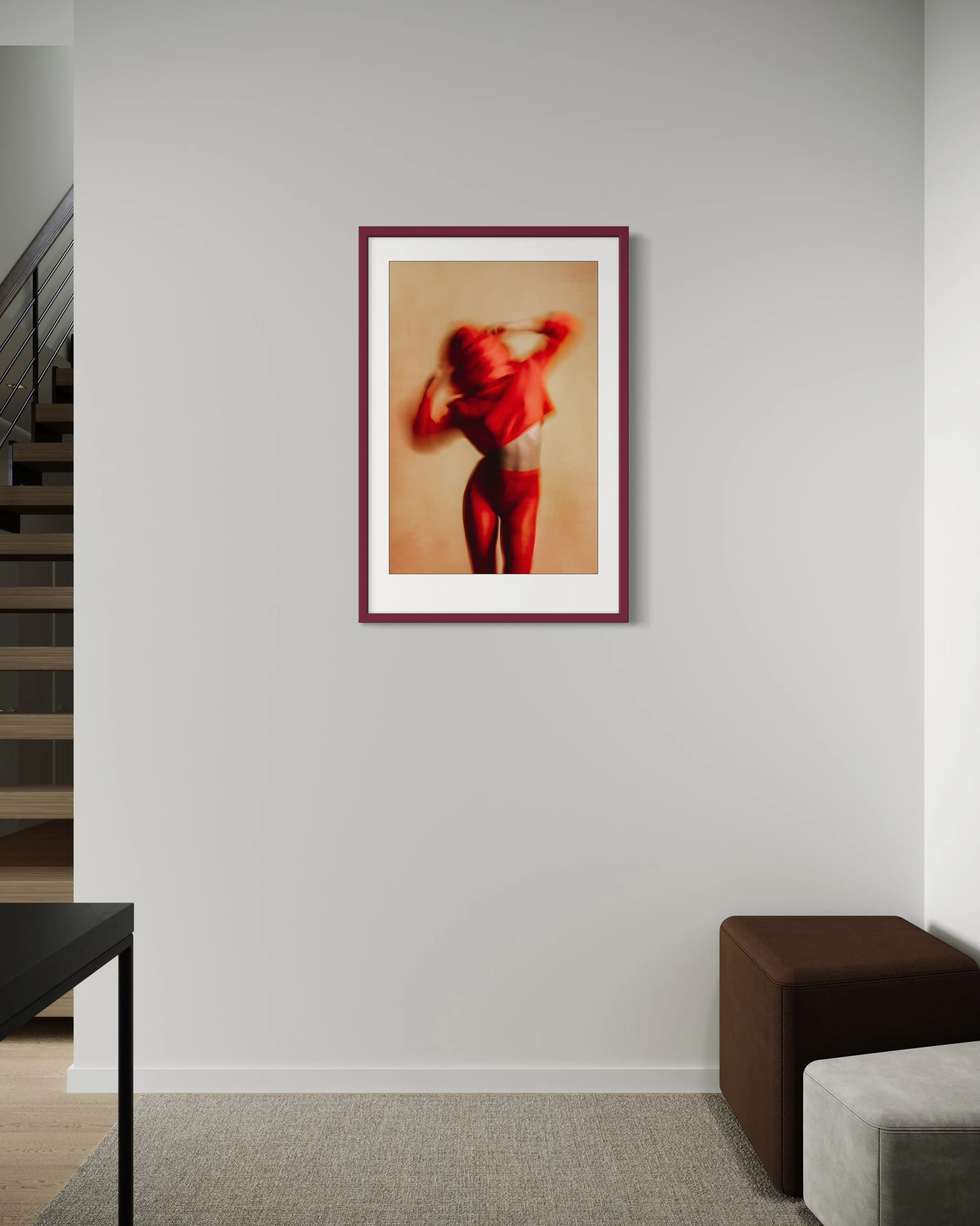 She lifts the fabric not to cover, but to rise. In Red Awakening, the body unfurls in a blur of heat and instinct — half-seen, wholly felt. The gesture is intimate and electric, a moment where selfhood stirs just beneath the skin, ready to surface.
